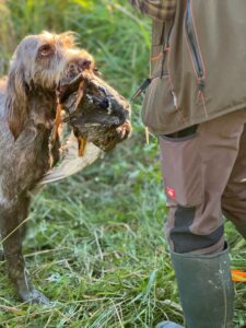 Wir verwenden unsere Spinoni im Bereich der Niederwildjagd bzw. zur Nachsuche. Seine führerbezogene Arbeitsweise ist das Buschieren unter der Flinte kombiniert mit dem doch selbständigen Suchstil. Durch sein „weiches Maul“ ist er als idealer Apportierhund im Einsatz.